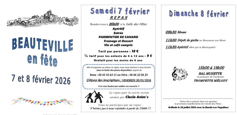 La Fête Locale de Beauteville aura lieu les 7 et 8 février 2026