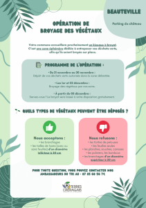 - Les 1er et 02 décembre : Broyage des végétaux par nos soins